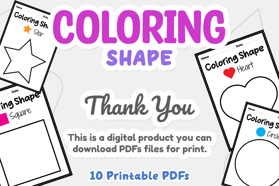 Coloring shape printable worksheets for preschool, kindergarten and Montessori kids