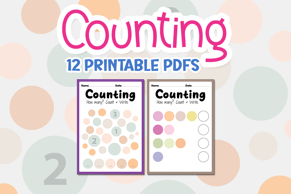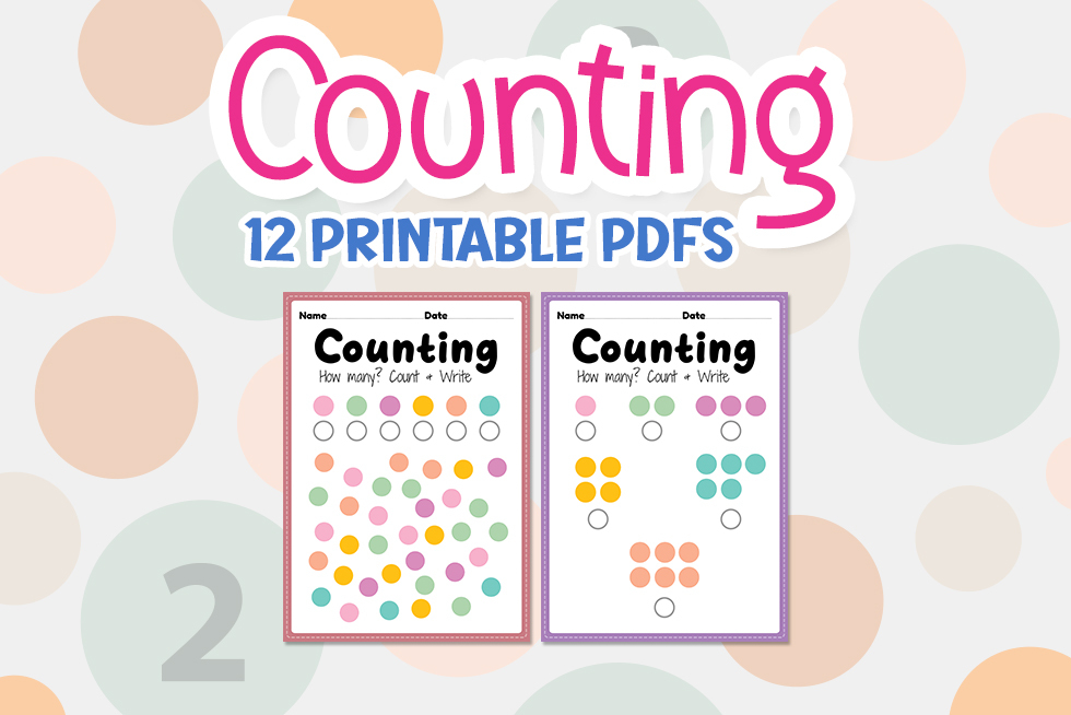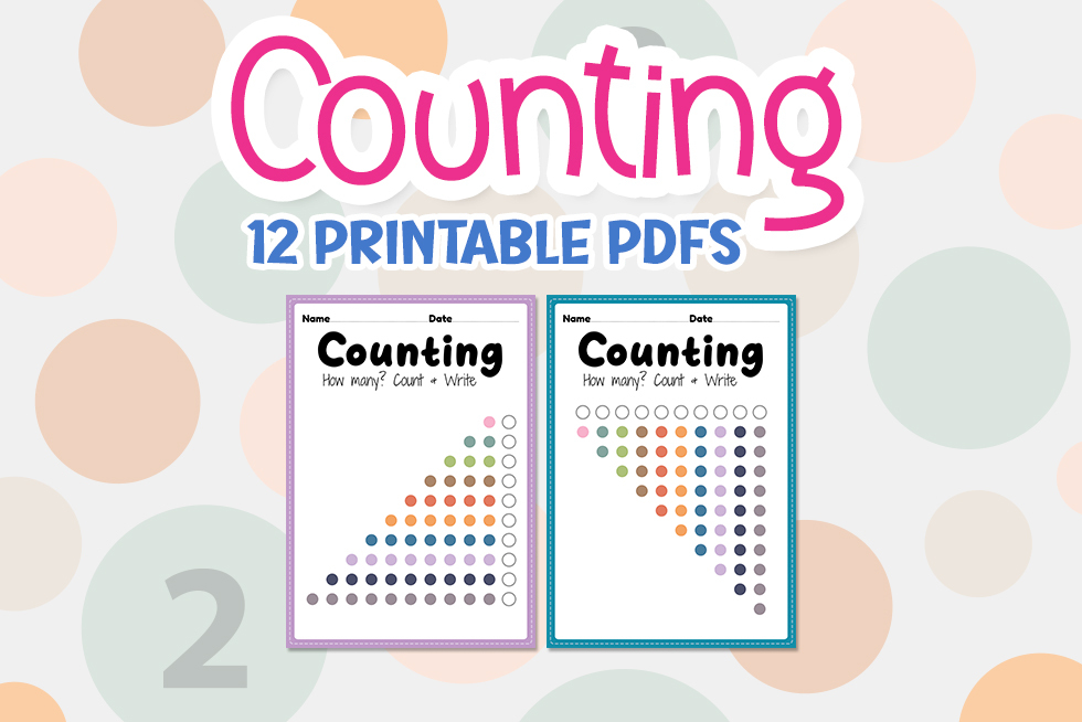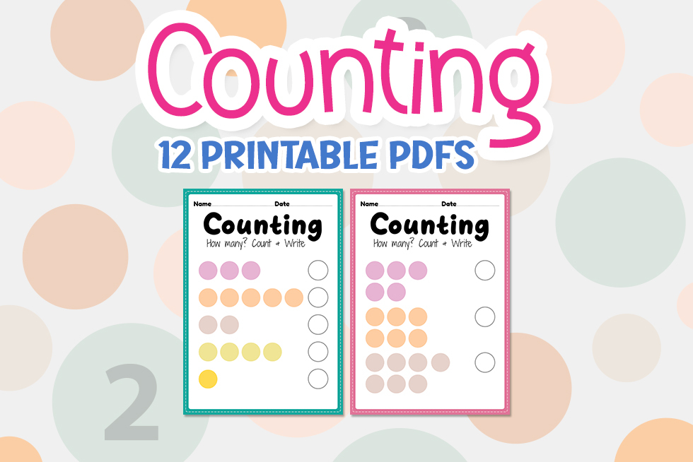 Counting worksheet, math printable sheet for preschool and kindergarten kids activity to learn basic mathematics count and write skills in a printable PDF pages.